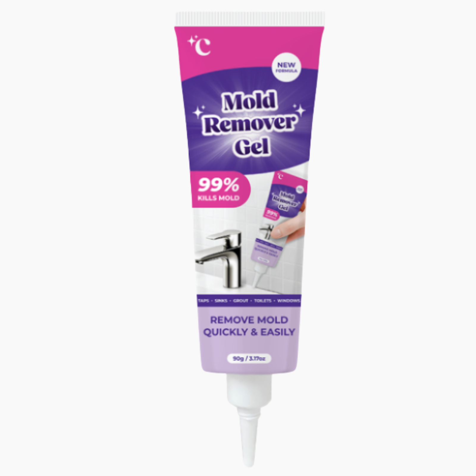 Sehen Sie zu, wie selbst hartnäckiger schwarzer Schimmel und Flecken sofort verschwinden – keine Wartezeit, kein Schrubben.